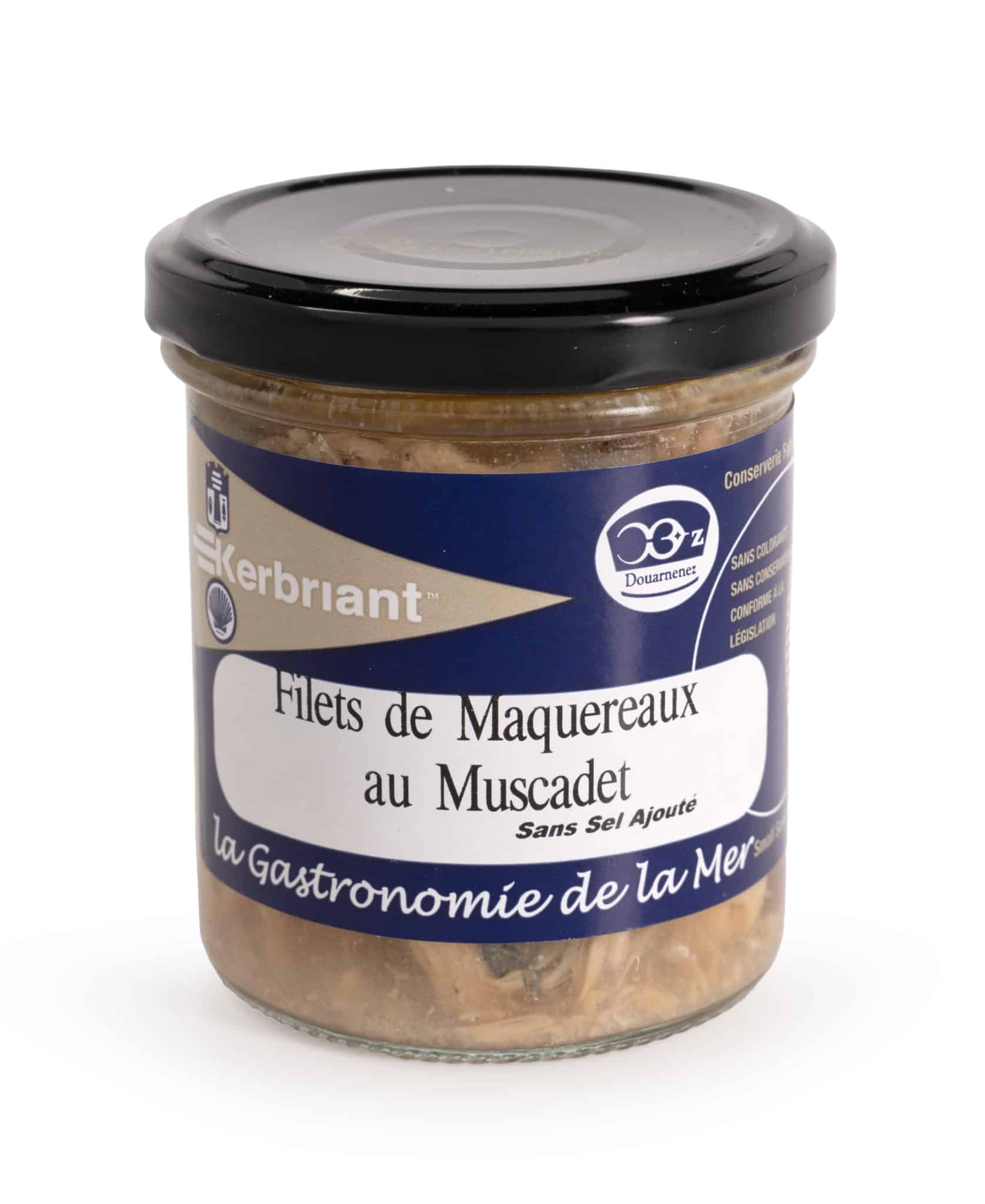 Filets de maquereaux (Scomber Scombrus) 68%, muscadet (sulfites), vinaigre d’alcool (8% acidité), eau, aromates.